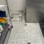 佐賀県基山町の物流倉庫のトイレで磁器タイルクリーニング行ないました。before ⇒ after 水垢除去のため、酸性洗剤を使用、ステンレス...