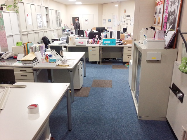 落ち着いた青色のカーペットへ張り替え、爽やかなオフィス空間になりました。