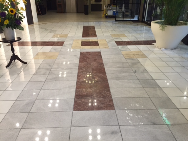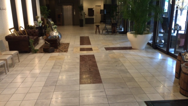 大理石の研磨で高級感のあるロビーに