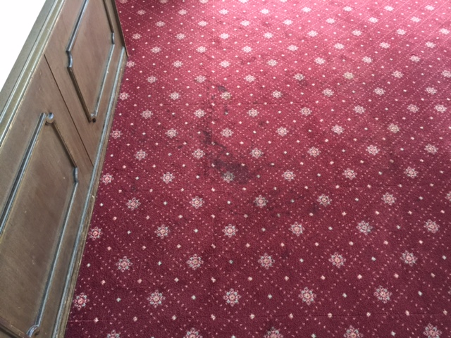 下関のホテルの最上階にあるレストランのカーペットクリーニングをさせて頂きました。