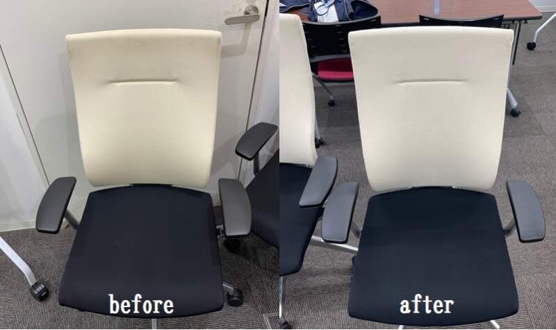 前回紹介した休憩室の椅子クリーニングと同時に会議室の椅子もクリーニングしました。