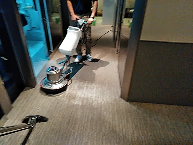 エリアごとにカーペットクリーニングとワックス清掃、ガラス清掃を行いました。