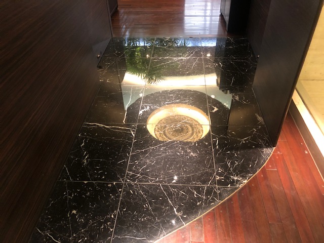 長崎県佐世保市、ハウステンボス近くのホテルで大理石の研磨光沢再生しました。