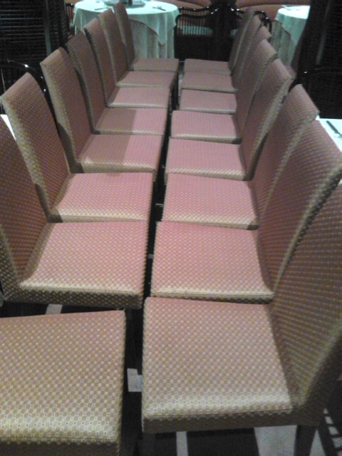 福岡市早良区原交差点の近くの眼科で待合室のイス生地の張替え行いました。