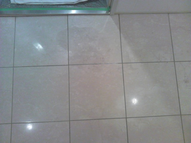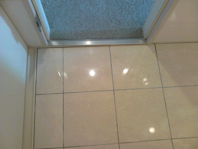 客室のバスルームの床にひどいシミがあるとの事で対応致しました。