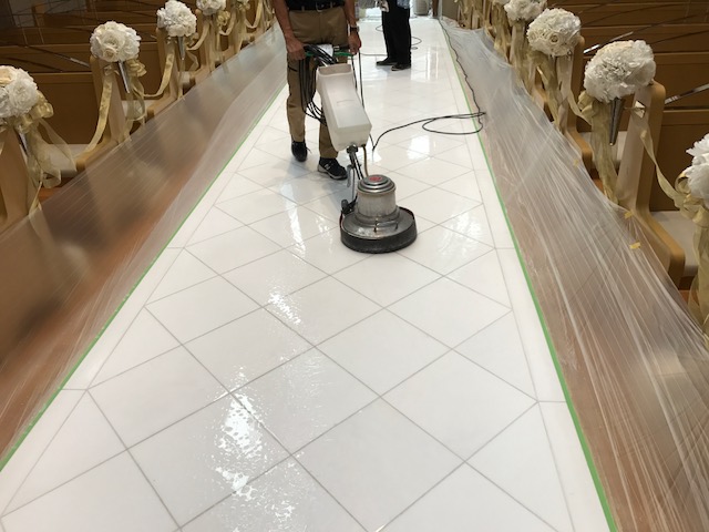 バージンロードの大理石研磨
