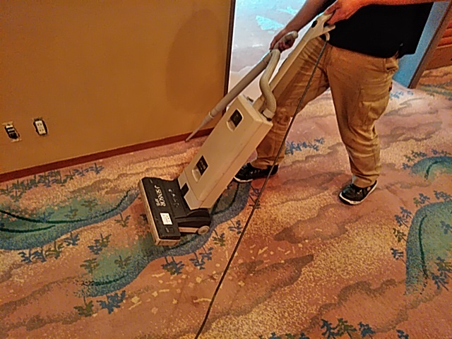 その影響もあって「宴会場のカーペットが汚れてきた」とのこと、クリーニングの依頼を頂きました。