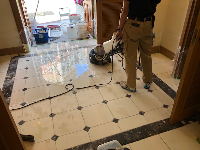 工程が多く、ポリッシャーをゆっくり動かさないといけないので作業は1時間で10㎡程度しか進みません。(*カーペットクリーニングは1時間で100㎡程度)