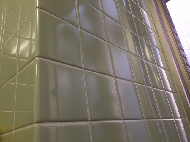 マンションエントランスのタイルクリーニング ゴミ出しの際にできたと思われる、気になる黒いシミ