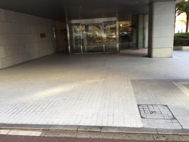 福岡市内オフィスビル外部のタイル洗浄で頑固な黒ずみ除去